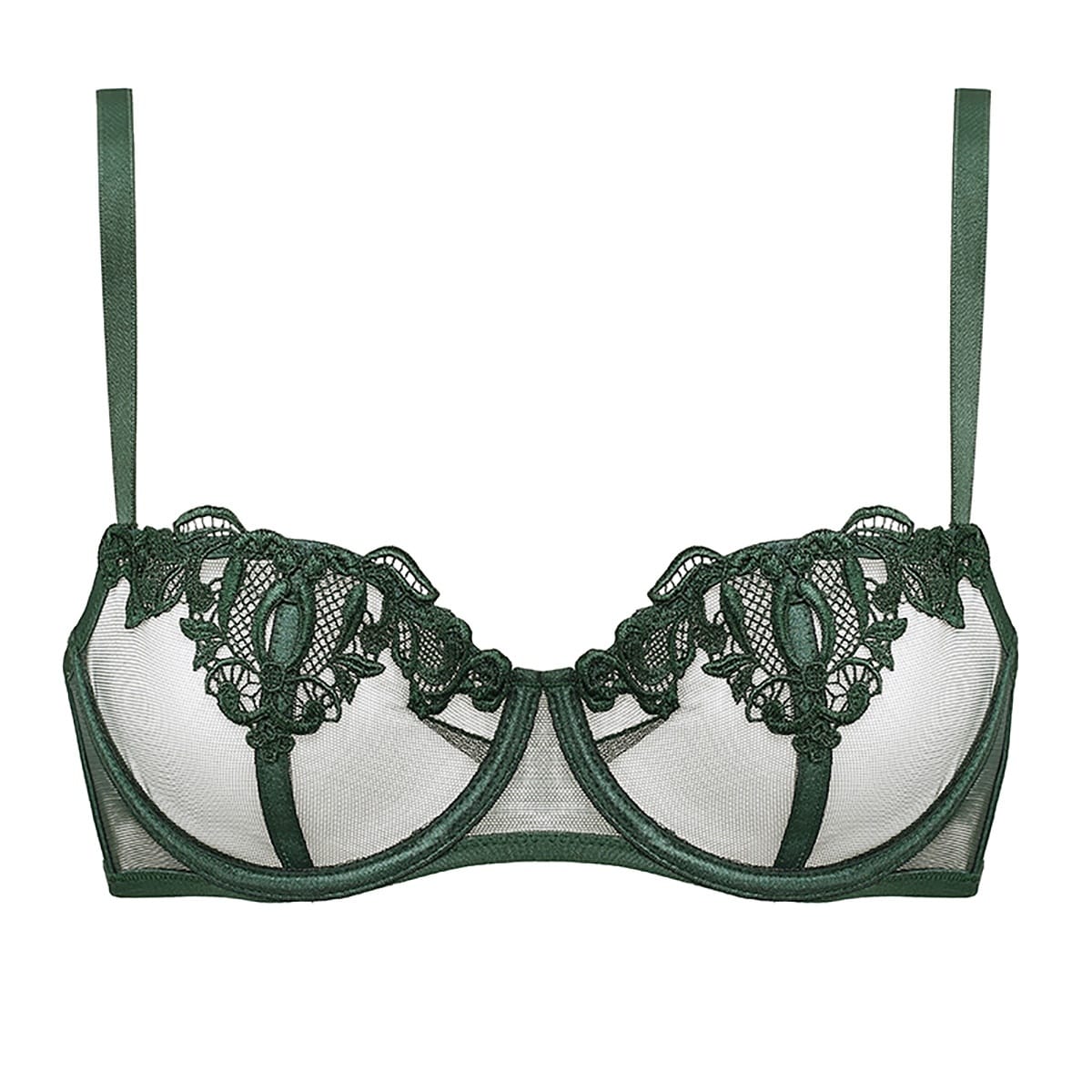 Vyrazte na rande v této neodolatelné jiskřivé podprsence Ewa Bien Lea B139 Soft v originální tmavě zelené barvě, která vás bude provázet dobrodružnou cestou až do ložnice, kde okouzlí partnera již na první pohled a promění vás v bohyni. Je ušita z hedvábně jemného a sametově hebkého tylu prvotřídní kvality, který pohladí vaši pokožku s neuvěřitelnou něžností. Navíc probudí fantazii vašeho protějšku, jelikož má košíčky i boky průhledné, takže nechá nahlédnout pod pokličku. Tkanina je výrazně pružná, skvěle obepne vaše tělo a perfektně se přizpůsobí křivkám. Síťovina košíčků bez výplně je však pevná, má zesílený vertikální šev, který vám dodá jistotu a jedinečný tvar vašich ňader. Kostice a úžasný střih balconette podprsenky vaše přednosti pozvedne pro vzrušující vzhled vašeho dekoltu, který bude magneticky přitahovat pozornost. Ke všemu na vrchní části košíčků naleznete skvostný ozdobný prvek z krajkové výšivky, který jim propůjčí fantastický šmrnc. Na bocích vás pak potěší zesílené stabilizátory, které skvěle plní svou funkci, zabrání odstávání a zajistí vaše maximální pohodlí při nošení. Ramínka nejsou odnímatelná a disponují zlatými kovovými jezdci, kterými nastavíte přesně padnoucí velikost. Zapíná se vzadu na třístupňovou řadu dvou háčků. Mrkněte na další skvostné kousky této značky, které najdete zde.