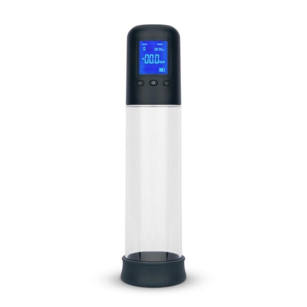 Vakuová pumpa moderního designu tmavě modré barvy je složena z ovládací části a pevného válce z odolného ABS plastu, který má pravítko a je průhledný, takže dopřeje sledování vašich pokroků. Na ovládací části dominuje velký a přehledný podsvícený LED displej. Dobře se drží v ruce a pohodlně se s ní manipuluje. Manžeta je z hedvábně jemného silikonu prvotřídní kvality, která je flexibilní, perfektně se přizpůsobí a špičkově utěsní prostor kolem penisu. Pumpa disponuje celkem třemi ovládacími tlačítky, včetně tlačítka bezpečnostního ventilu pro rychlé vypuštění podtlaku.